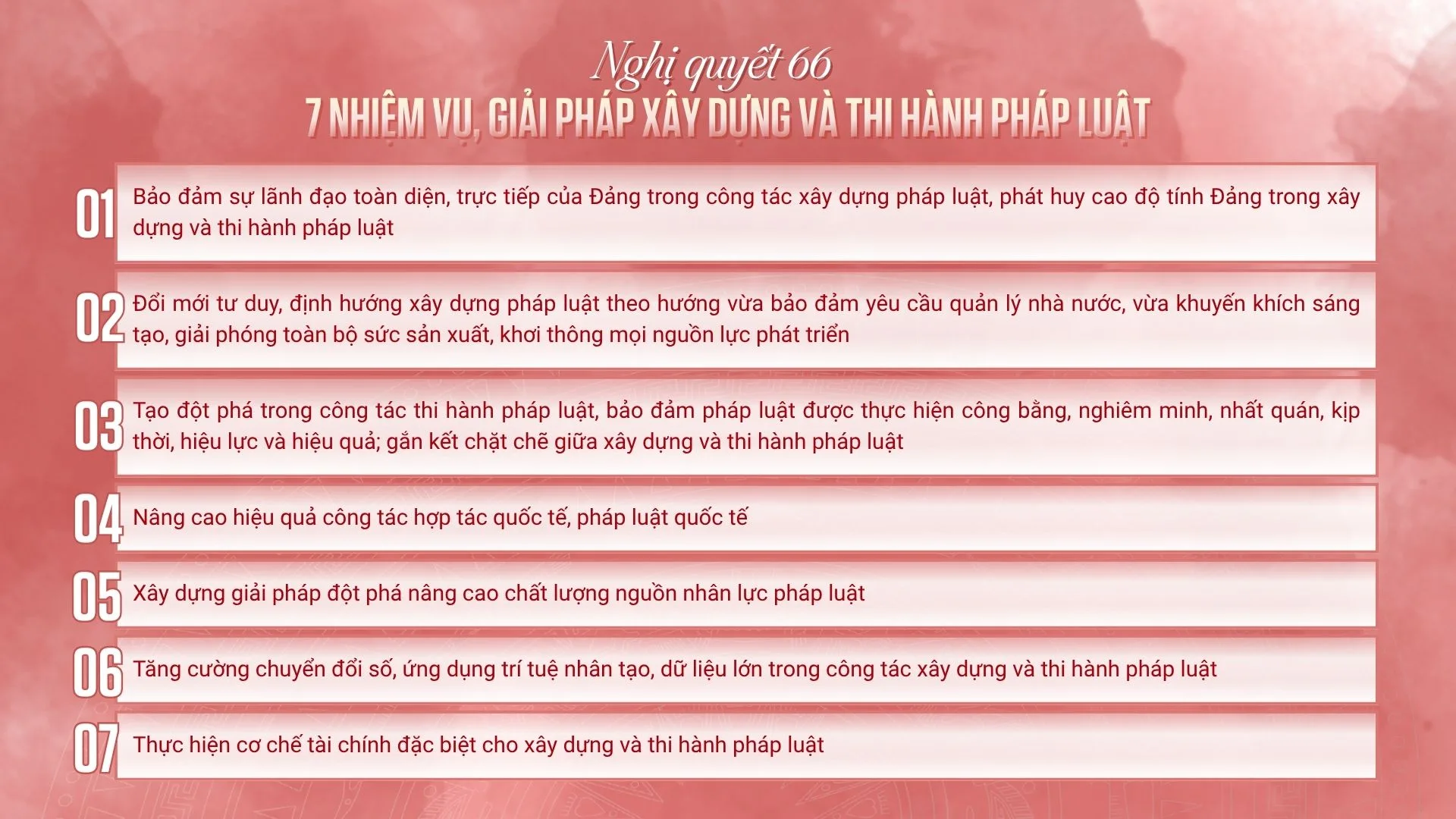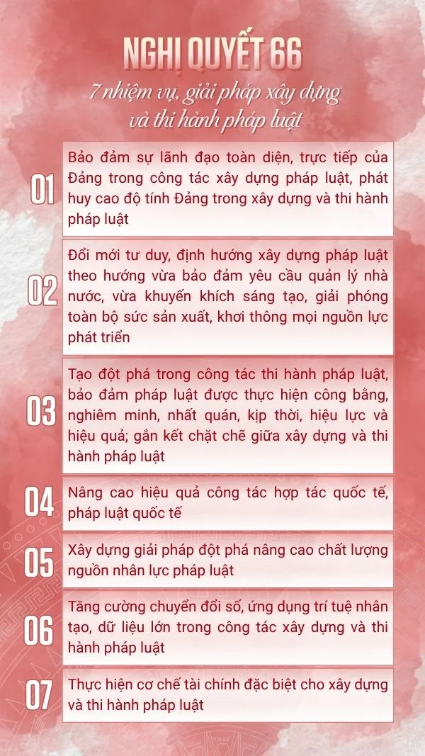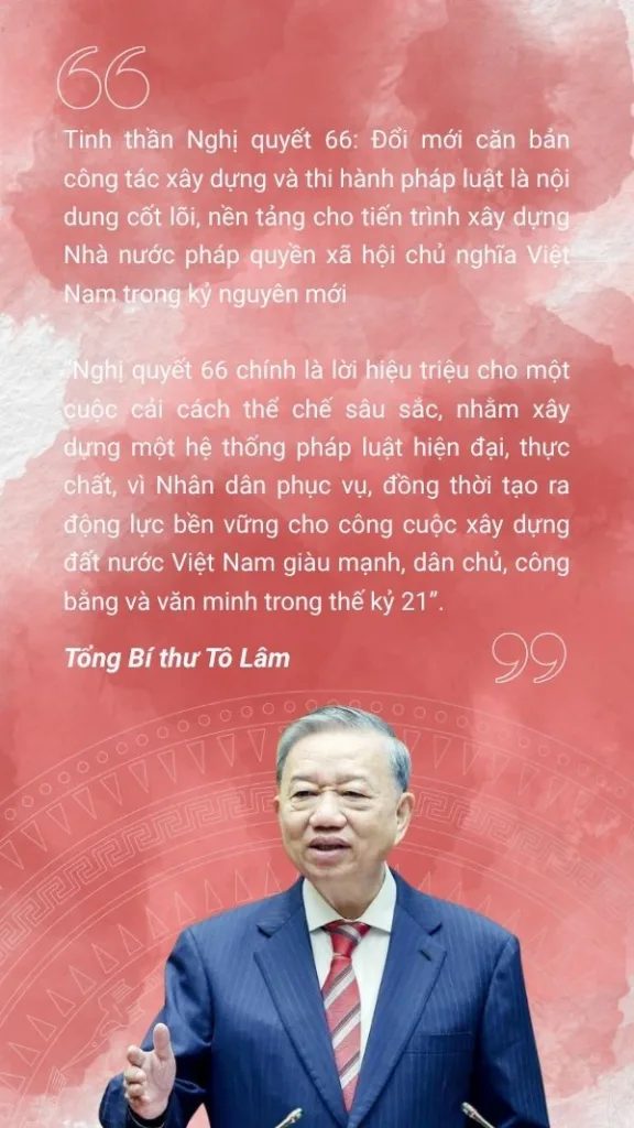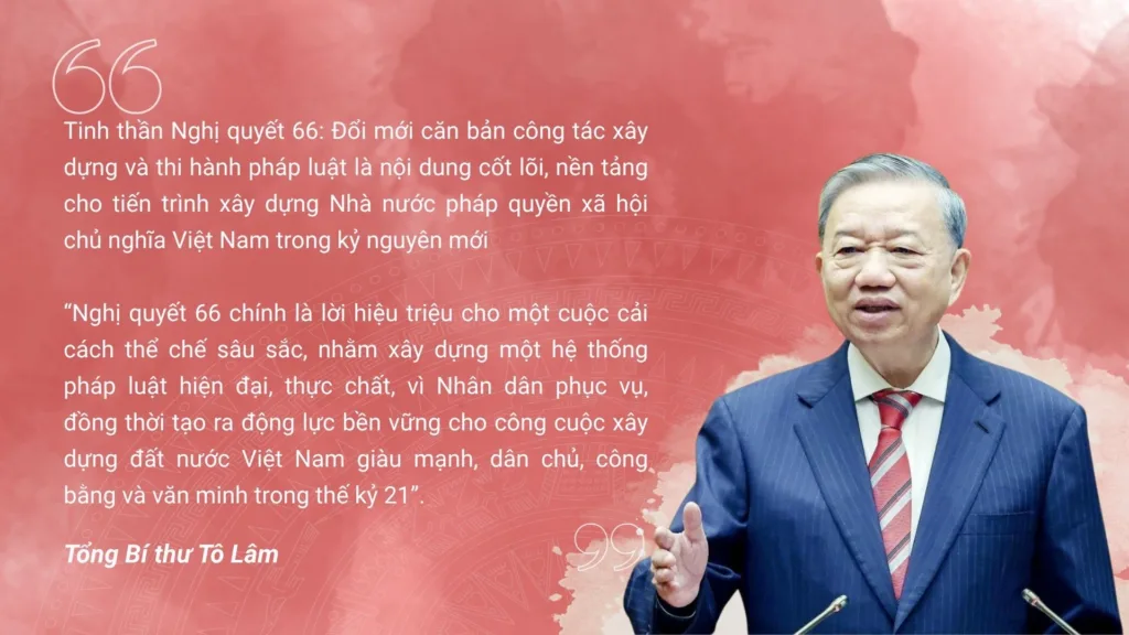 Nghị quyết 66 – nghị quyết chuyên đề đặc biệt quan trọng với nhiều quyết sách chiến lược về đổi mới công tác xây dựng và thi hành pháp luật đã ra đời. Qua đó, thể hiện rõ quyết tâm xây dựng Nhà nước pháp quyền xã hội chủ nghĩa vững mạnh, hiện đại, hiệu lực và hiệu quả trong kỷ nguyên mới.