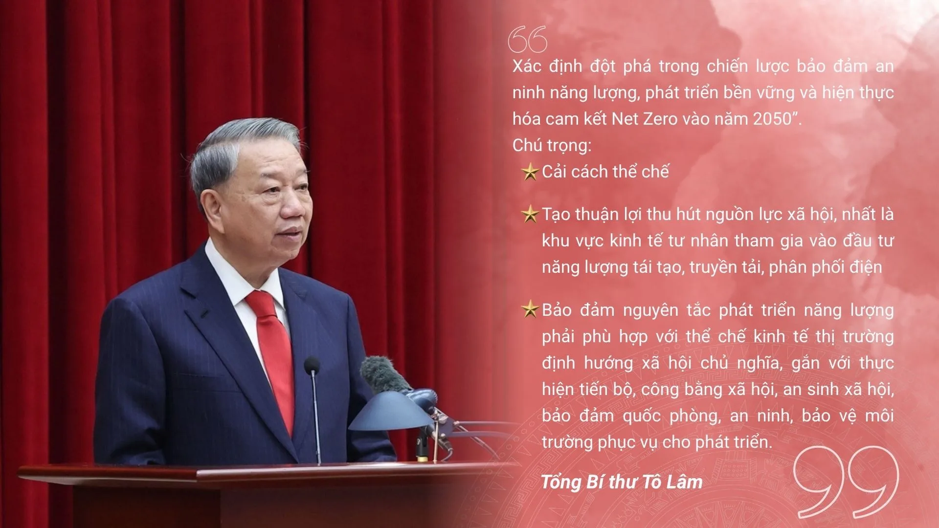 Để đáp ứng yêu cầu phát triển nhanh và bền vững đất nước trong thời gian tới, nhất là thực hiện 2 mục tiêu chiến lược đến năm 2030 và năm 2045, công tác bảo đảm an ninh năng lượng có vai trò rất quan trọng, năng lượng phải đi trước một bước, đáp ứng đầy đủ nhu cầu phát triển kinh tế – xã hội, quốc phòng, an ninh và nâng cao đời sống nhân dân.