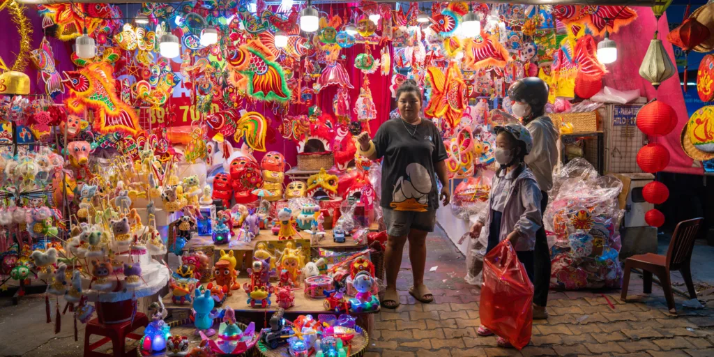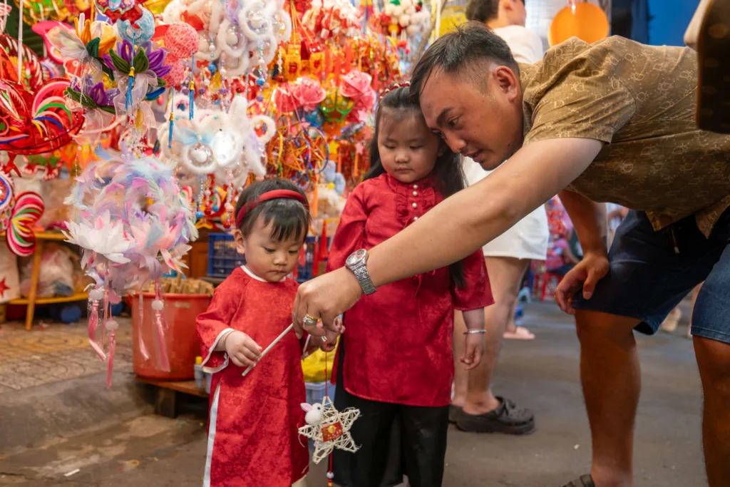 Khi dạo bước trên phố, bạn không chỉ được chiêm ngưỡng mà còn cảm nhận được sự ấm áp, gắn kết gia đình và cộng đồng. Người lớn đưa con cháu đi chơi, tìm mua những món đồ chơi tuổi thơ, vừa ôn lại kỷ niệm vừa giáo dục con trẻ về ý nghĩa của Tết đoàn viên.