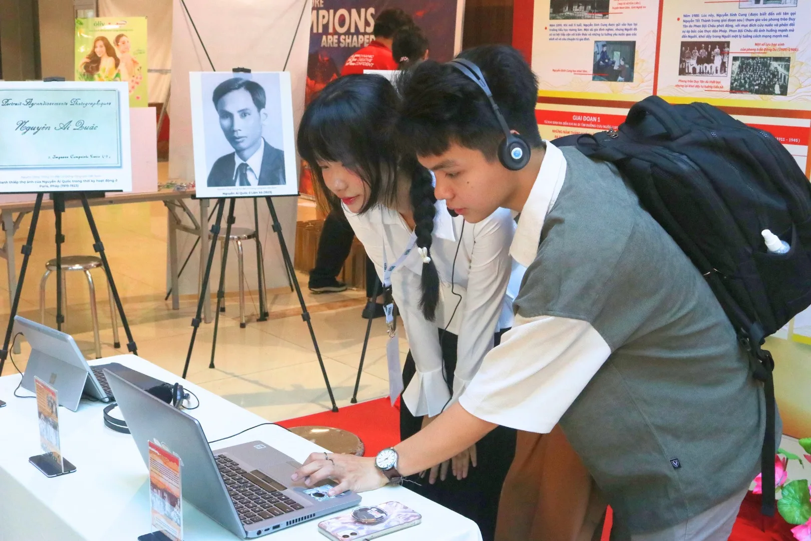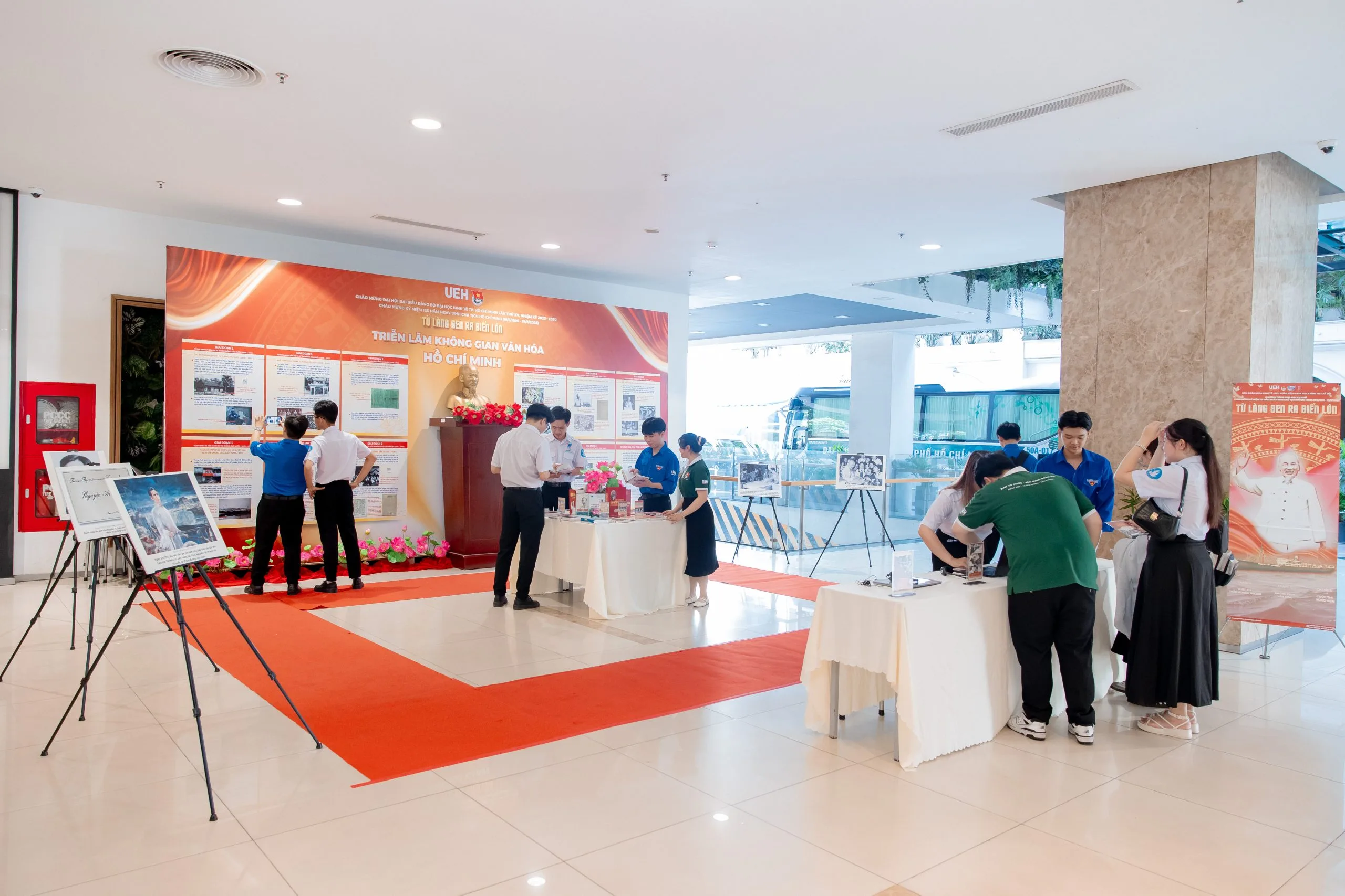 Không gian Văn hóa Hồ Chí Minh 2025 được trưng bày hiện đại, kết hợp công nghệ tại trường Đại học Kinh tế TP.HCM